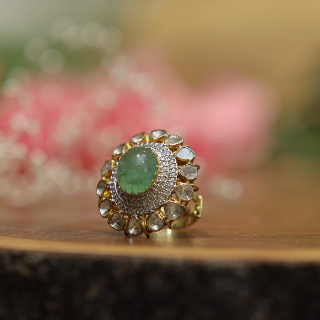 Designed to stand out, our Polki Rings combine the brilliance of uncut diamonds with intricate gold craftsmanship. They’re not just accessories – they’re symbols of timeless luxury and heritage.